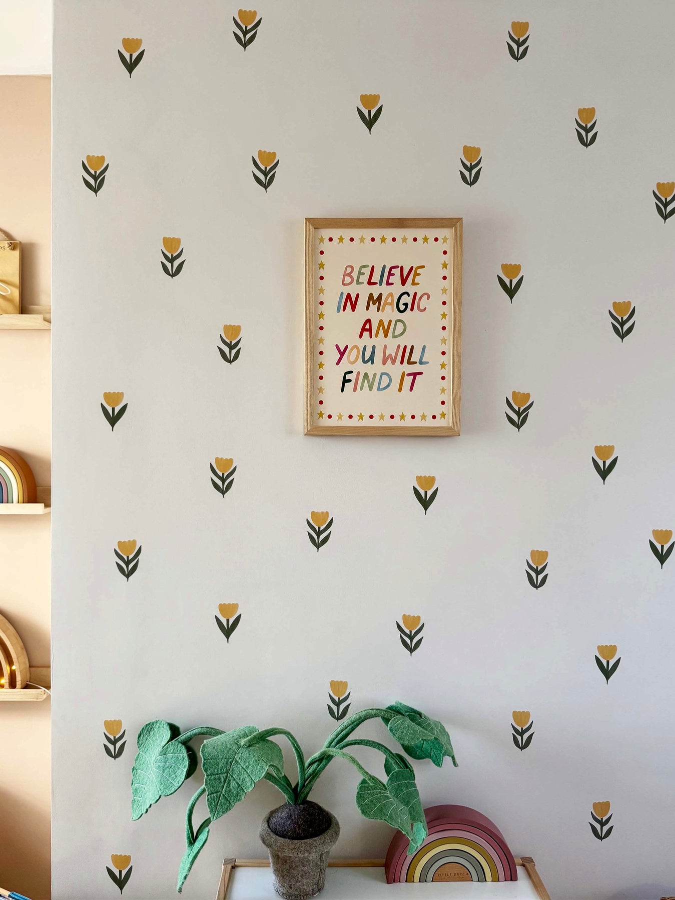Our wall stickers can be used on a multitude of surfaces, including walls, ceilings, radiators and cupboards! They can be repositioned, reused and removed with ease, without leaving any sticky marks.
